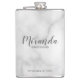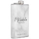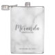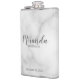Sätt en personlig beröring på bröllop med personlig bridesmaid-kolv. Den här kolven har personlig bridesaid namn i det moderna grått-skriptet stil med rubrik och bröllop datum i grått modern sans serif-typsnitt stil på vit marmorbakgrund. Även perfekt för maid of honor, budens mamma och mer.