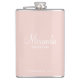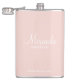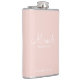 Sätt en personlig beröring på bröllop med personlig bridesmaid-kolv. Den här kolven har personlig bridesaid's namn i det vita, moderna skriptteckensnittet stil med rubrik och bröllop datum i vitt, modernt sans serif-teckensnitt stil på rosa. Även perfekt för maid of honor, budens mamma och mer.