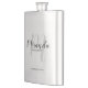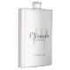 Sätt en personlig beröring på bröllop med personlig bridesmaid-kolv. Den här kolven har personlig bridesaids namn i det moderna skriptteckensnittet stil och monogram i det lätta grått moderna skriptteckensnittet stil som bakgrund med titel och bröllop datum i gråttets moderna sans serif font grått. Även perfekt för maid of honor, budens mamma och mer.