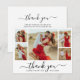 Modern, skript Bröllop 5 Photo Collage - tack för ditt kort i svartvitt. Elegant minimalistisk, snyggt bröllop-kortmall med fem (5) rutnätsfotokollage och ett "Tack" kursivt handskriftsskript med kalligrafi-dekorteckensnitt svan. Anpassa ditt namn och tack för meddelandet.