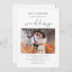 Modern Script Photo Bröllop. Lägg till ditt favoritfoto och anpassa med dina detaljer. Bröllopet är i en stilren handskriven stilspråk. Skapa en QR-kod till din bröllopswebbplats för att ersätta den på baksidan genom att helt enkelt ersätta exempel-URL:en med din egen, för ett bekvämt sätt för dina gäster att svara och se fler detaljer.
