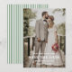 Announce your wedding day with our Modern Script Photo Wedding Save the Date Card, a stylish and personalized way to share your exciting news. The front of the card features a beautiful vertical-photo layout, showcasing your favorite couple or engagement photos, paired with an elegant “Save the Date” message in modern script typography and a green striped background. This thoughtfully designed front creates a romantic and eye-catching first impression for your guests. The back of the card features an editable wedding date calendar, allowing your special day to be clearly highlighted for easy reference. This clean and modern calendar design adds both style and functionality, making it simple for guests to remember and mark your wedding date. Perfect for couples searching for photo save the date cards, calendar save the date invitations, or modern wedding stationery, this personalized design blends contemporary style, simplicity, and timeless elegance, setting the perfect tone for your upcoming wedding celebration.