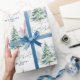 Christmas gift wrapping paper feature watercolor pine tree and elegant Merriest Christmas script in sage green, modern and simple. Custom your own family name.