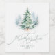Modern Script Pine Tree Merriest Christmas Vinflaska Etikett