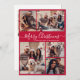 Modern Elegant Calligraphy Red 5 Photo Collage God jul Script Helgdag Card. Den här snygga, minimalistiska, enkla, vismliknande, fem (5) fotokortmallen Julhälsningar en söt-rutnätsfotokollage och säger "God jul"! Texten "God jul" hälsning är skriven i ett handskript som snabbt byts ut mot svan typpografi eller kalligrafiskript i rött mot vit färg-bakgrund. På motsatt sida med din hälsning-meddelandemall med lite hjärtskugga på vit och en vågrät fotomall. Den här Söt Anpassningsbarnas Personlig Fotojulkort är ett underbart sätt att påminna nära och kära om att du tänker på dem den här vinterJulhelgen.