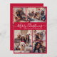 Modern Elegant Calligraphy Red 5 Photo Collage God jul Script Helgdag Card. Den här sjutna, minimalistiska, viskösa 5 (5) fotokortmallen Julhälsningar ett söt-rutnätsfotokollage och säger "God jul"! Texten "God jul" hälsning är skriven i ett vackert handskrivet skript med snabb smak-svan typpografi eller kalligrafi i rött på vit färg-bakgrund. På motsatt sida med din hälsning-meddelandemall med lite hjärtskugga på vit och en vågrät fotomall. Den här Söt Anpassningsbarnas Personlig Fotojulkort är ett underbart sätt att påminna nära och kära om att du tänker på dem den här vinterJulhelgen.