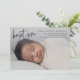Denna moderna dop-inbjudan för bebisfoton med dopmotiv har en vacker horisontell bild och handskrivna dopmotiv samt minimal redigerbar text. Klicka på redigeringsknappen för att anpassa denna design.