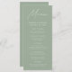 Öka din bröllopsmottagning med vår vackert utformade bröllop-meny, med ett elegant, handskrivet, vitt skript på en grönt. Perfekt för par som vill ha ett enkelt men sofistikerat utseende. Med den här moderna designen kan du anpassa dig efter namn, bröllop-datum och menyerbjudanden. Dess minimalistiska stil kompletterar utan vidare varje bröllop-tema, och tillför lite elegans till er speciella dag. Gör ett bestående intryck på dina gäster med en meny som återspeglar enkelheten i din bröllop vision av chicen.