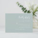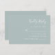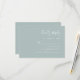 Det här enkla, moderna kortet för inneslutning i bröllop OSA har vit text på en blå bakgrund av havsytglas. Rubriken visas i snyggtens handskriftsgrafi. Anpassa återstående text i sans serif-teckensnitt. Den omvända sidan är massivt havsglas.