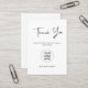 Visa din tacksamhet i stil med det här "Modern Script Small Business Tacker You Card". Det här kortet har ett svart skript för elegant och utrymme för logotypen på framsidan och är perfekt för att bygga starka anslutningar till kunder. I baksidan finns anpassade fält för dina social-mediehandtag och webbadress, skapar den professionell och personlig beröring till din varumärkesförpackning. Idealisk för små företag tittar att lämna ett varaktigt intryck.