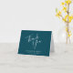 Den här eleganten är ett modernt, minimalistiskt bröllop-tack som du använder för att skriva handskript i snyggt i vitt på en tealblått bakgrund. Lägg till parets datum namn och bröllop i sans serif-teckensnitt.