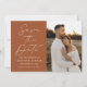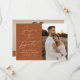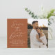 Meddela ditt kommande bröllop i stil med det här trendiget Spara datumkortet med hjälp av Modern Script Terracotta-fotot! Designfunktionerna "Spara datum" som visas i trendigets vita calligrafi med en terracotta-bakgrund. Anpassa framsidan av minimalisten spara datumet med förlovningen namn, bröllop, plats och lodrät. Kortets baksida visningar ett vågrät foto med bröllop webbplats som visas nedan. Chicen terracotta måste spara datumet för perfektens val för det moderna bröllop.