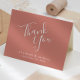 Den här eleganten är ett modernt, minimalistiskt bröllop-tack som du har med kortet för handskriftsskript i snyggt i vitt på en terracotta-bakgrund. Lägg till parets datum namn och bröllop i sans serif-teckensnitt.