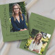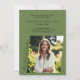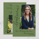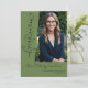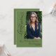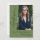 En enkel, modern examensfestinbjudan med en handskriven ”examen” accent. Eleganta, sneda fotoklippsdetaljer ger en unik grafisk detalj. En fin rik grön färg.