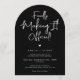 This modern wedding invitation features a sleek black design with a soft arch shape.