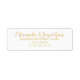 Modern Bröllopsvit och Guld: Returadressetikett med brid och namn i guld i modernt skriptteckensnitt med adress i guld moderna sans serif-teckensnitt på vit bakgrund. Obs! Folidinformationen simuleras i teckningen. Ingen faktisk folie kommer att användas vid skapar av denna produkt.