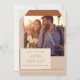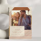 Den här snyggten sparar datumkortet med ett varmtonat geometriskt ram med diagonalt rand, kurvade hörn och ett fullt fotoutrymme för ditt favoritpar porträtt. Ett modernt serif-teckensnitt tillför lite elegans samtidigt som det behåller ett återinspirerat utseende. Perfekt för par att planera ett fallbröllop eller ett vintage-temat firande. Tillgänglig som ett utskrivet kort eller hämtningsbar fil för flexibla sändningsalternativ.