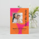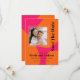 Det här djärva och vackra bröllop spara datum-kortet är i full gång med den moderna retroren stil! Planera din fantastiska bröllopsdag firande med detta pulserande shock rosa- och orange färg. Det här färgkortet har en designer som ser ut med ljusa rundade former av orange över en shock rosa. Textmallen i contemporary är av skarp typ ansikte med en reflex och genomför temat på ett vackert sätt. Ladda upp ditt kvadratfoto i ställe på det exempelfoto som visas för en personlig och spara det datumkort som du kommer att vara stolt över att vara med vänner och familj.