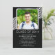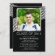 Modern studentfest av 2014 års fotoinbjudan med svart bakgrund och silver och vitt diagonalt rand. Vänd fotot av snyggten inbjudan över för att visa en matchande rand bakåt för en speciellare beröring av extra. Underbar för en pojkgrad, flicka student, högskoleinbjudan eller akademisk examen. Besök vår butik för att hitta vår inbjudan till contemporary studenten i ett stort urval av populära färger.
