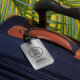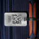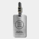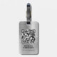 Modern bagagetagg i professionellen med företagets eller organisationens logotyp och QR-kod mot en silver-fack-metallbakgrund. Lägg till en namn och titel i enkel typografi.