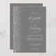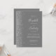 Den här elegantens lämnat kant har en modern bröllopsinbjudan i silver i glitter. Med anpassadet kombineras handskrift, tryckplåt och kursivt typsnitt med silver grått på en medelstor grått-bakgrund. På baksidan finns utrymme för bröllop-information på en solid grått-bakgrund, tillsammans med en QR-kodgäst som kan söka på webbplatsen och OSAN, vilket sparar kostnaderna för utskrift och utskick av separat OSA kort.