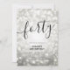 Elegant Glam Silver Glitter Ljus 40:e födelsedagsskriptinbjudan med mousserande ljus och modernt typografi.