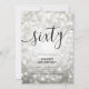 Elegant Glam Silver Glitter Ljus 60:e födelsedagsskriptinbjudan med mousserande ljus och modernt typografi.