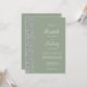 Den här elegantens lämnat kant har en modern bröllopsinbjudan i silver i glitter. Anpassadet kombinerar vit handskrift, tryckplåt och kursivt typsnitt mot bakgrund av grönten. På baksidan finns utrymme för information om bröllop på en solid sage-grönt, tillsammans med en QR-kodgäst som kan söka på webbplatsen och OSAN, vilket sparar kostnaderna för utskrift och utskick av separat OSA kort.