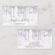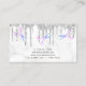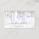 Elegant och söt hårstylist affärskort med faux silver glitter, holografisk sax, vitt marble struktur och elegant calligraphy font.