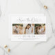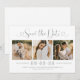 Modern grått- och vita bröllop spara datum-annonskort har en kollage av tre bilder med fyrkantig förlovning och en snyggt-typografi med kalligrafi av chic och hjärtaccenter. Den enkla och elegant anpassningsbar som kan vara helt personlig med det numeriska datumet för bröllop, briden och groom namn, platsen för ceremonin, bröllop webbplats och en formell inbjudan att följa ordalydelsen.