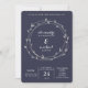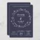 Den här snyggtens bröllopsinbjudan har en midnattsblå bakgrund och en modern faux silver-andedräkt med abstrakt löv.