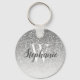 Den här nyckelringen i chic har silver formbre för glitter. Anpassa den med det inledande vita serif-teckensnittet och ditt namn i mörk grått-handskriftsskript med stil-pensel.