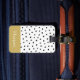 Ta den här moderna monogrampolprickan svart och guld-bagagetaggen på nästa äventyr. Du kan anpassa baksidan med din information. Spärrmärken ger sinnesro och ökad säkerhet.