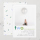 Det första födelsedagsfest inbjudan innehåller texten "två" i ett fet modernt teckensnitt på ljusa färger. Anpassa genom att lägga till ditt lilla foto- och party-detaljer. Baksidan har en färglös sprinkles mönster och det finns utrymme att lägga till ytterligare ett foto genom att anpassa den ytterligare!