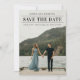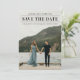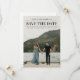 Ett modernt bröllop-foto Spara datumkortet med ett fullt utfallsfoto av lodrät med ren och chic redigerbar text på framsidan. På baksidan finns en löstagbar webbplatstext från bröllop som gästerna kan få mer information om. Klicka på knappen Redigera om du vill anpassa designen.