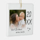 Modern "first Christmas as an auntie" ceramic ornament with a simple design featuring the year and a custom photo. Double-sided design.