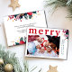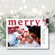 Det här moderna företagskortet har en röd "Merry"-contemporary med en skarp vattenfärgsdesign, din Julhälsningar och ditt foto. Kortets baksida innehåller ditt meddelande om helgdag av personligen. Perfekt för att skicka semesterhälsningar till kunder, anställda och alla som finns med på din lista. Fira säsongen med det här eleganten-kortet från Cherry Lane Designer!