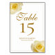 Det moderna Gul ros Blommigt Bröllop Bordsnumret. Kortet är modernt och elegant med vackert gul ros och ett tunt gräns mot vit bakgrund. Texten står i färg i golden. Anpassa varje kort separat för varje bordsnummer och placera det separat i din kundvagn. Anpassa all text på kortet i bord. Du hittar matchande objekt nedan i samlingen Gul ros Midnight Blue Bröllop.