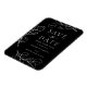Modern minimalistisk eukalyptus lämnar svartvit unik konstnär skapat bröllop spara datum inbjudningsmagnet att påminna vänner och familj om att behålla datumfritt. Vackert enkelt blad, snyggt minimalistiskt grönt konst teckning med vit elegant typografi på svart bakgrund. En förenklad botanisk design som är enkel att anpassa med hjälp av mallen för enkel använda. Originalkonstverk av konstnären Catherine Sweetman