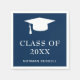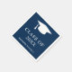 Modern napkin från studenten med en enkel och manlig utformning med "Ålklass" i stor fet typografi tillsammans med en gradsockel och student namn i vitt över en marin blå bakgrund. De här servetterna är perfekter för en kille student och är ett underbart sätt att göra studentfesten personligt rörd.
