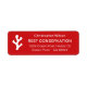 En enkel returadressetikett med minimalistisk vit korall logotyp och modern typografi på röd bakgrund. Den här snyggtens returadressetikett innehåller ditt eget namn, yrke eller företag och adress och kombinerar olika sans serif typsnitt från samma familj. Bakgrunden färg är anpassade på designnivå. Skapa egna och gör adressatomslag till en bris © y.BEE SEA