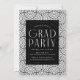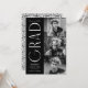 inbjudningskort för studentfest av trendig med student av tre foton som finns till högerna av designen i en lodrät-layout. "Grad" visas i vitt, modernt konstnärligt dekotecken med svart bakgrund. Anpassa den moderna fotot studentfest inbjudan genom att lägga till student namn, studenten och namn. Designen återgår till visning av studentfesten med en svart och vit geometrisk vridningsbakgrund. Perfekt för både högskoleexamen och högskoleexamen!