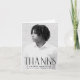 Ett enkelt tack från studenten som ger dig ett kort med studentens lodrät-foto med "Tack" som visas i svart, modern dekoskrivning. Anpassa framsidan av fotoporten genom att lägga till student namn, namn och studenten. Insidan av kortet har plats för din anpassningsbar tack för att du skickar ett meddelande i svart text eller lämnar det tomt för att skriva din egen.