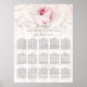 I det här moderna sätesschemat i elegant bröllop finns en handmålad rosa ros överst med petaler med bruden och brudgummen först namn och sätesschemat för att anpassa sig. Designad av Susan Coffey.