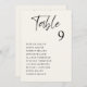 Modern bord-platskort för lätt grädde med Bord i ett chic-skript, bordsnumret i klassisk serif-typografi och gästernas namn i enkel typografi. Skapa varje sittande bord-diagram och lägg till i din shoppingvagn en åt gången och checka sedan ut gång alla bord i din vagn.