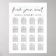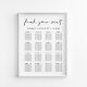 Ett enkelt och modernt sittdiagram i bröllop poster för upp till 16 bord med "hitta din plats" i ett chic och ditt namn och bröllop-datum gås med ihop av ett hjärta. Välj det digitala nedladdningsalternativet om du vill redigera med ändringar i sista minuten och skriva ut lokalt.