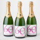 Modern Minimal Sixty and Fabulous pink and black 60th birthday sparkling wine bottle label that you can personalize for your sixtieth birthday party celebration. The "60 and Fabulous" is set using trending bold font typography. Text colors can be changed using the edit menu.
