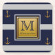 Modern sjöankare blå guld grå monogram underlägg papper kvadrat