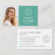 Skapa professionella visitkort för att höja din varumärkning. Denna redigerbara mall har en minimalistisk estetik med modern typografi och stilfulla ikonsymboler. Den kan anpassas med ditt profilfoto, namn, jobbtitel, företagslogotyp, telefonnummer, adress, e-post, webbplats och användarnamn för sociala medier. En elegant design som kan anpassas för att passa dina unika affärsbehov. Visitkort är ett effektivt marknadsföringsverktyg som hjälper till att bygga din varumärkesidentitet. De tillhandahåller viktig kontaktinformation för ett bestående första intryck på potentiella kunder. Tryckta färger: dämpad grön, vit och mörkgrå, eller anpassa färgen med designverktyget.