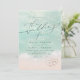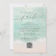 Vacker turkos abstrakt vattenfärgsglande havsvåg och hjärtan i sandbotten, överst med snyggt och elegant serif-typsnitt, bröllop och webbplats QR-kod på baksidan, modern och enkel. Underbar bröllopsinbjudan för nautiska strandbröllop, tropiskt destinationsbröllop, kusthav temed bröllop under sommaren.